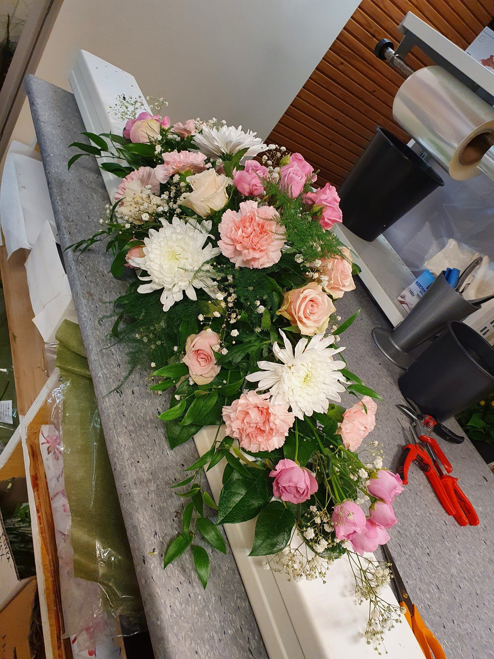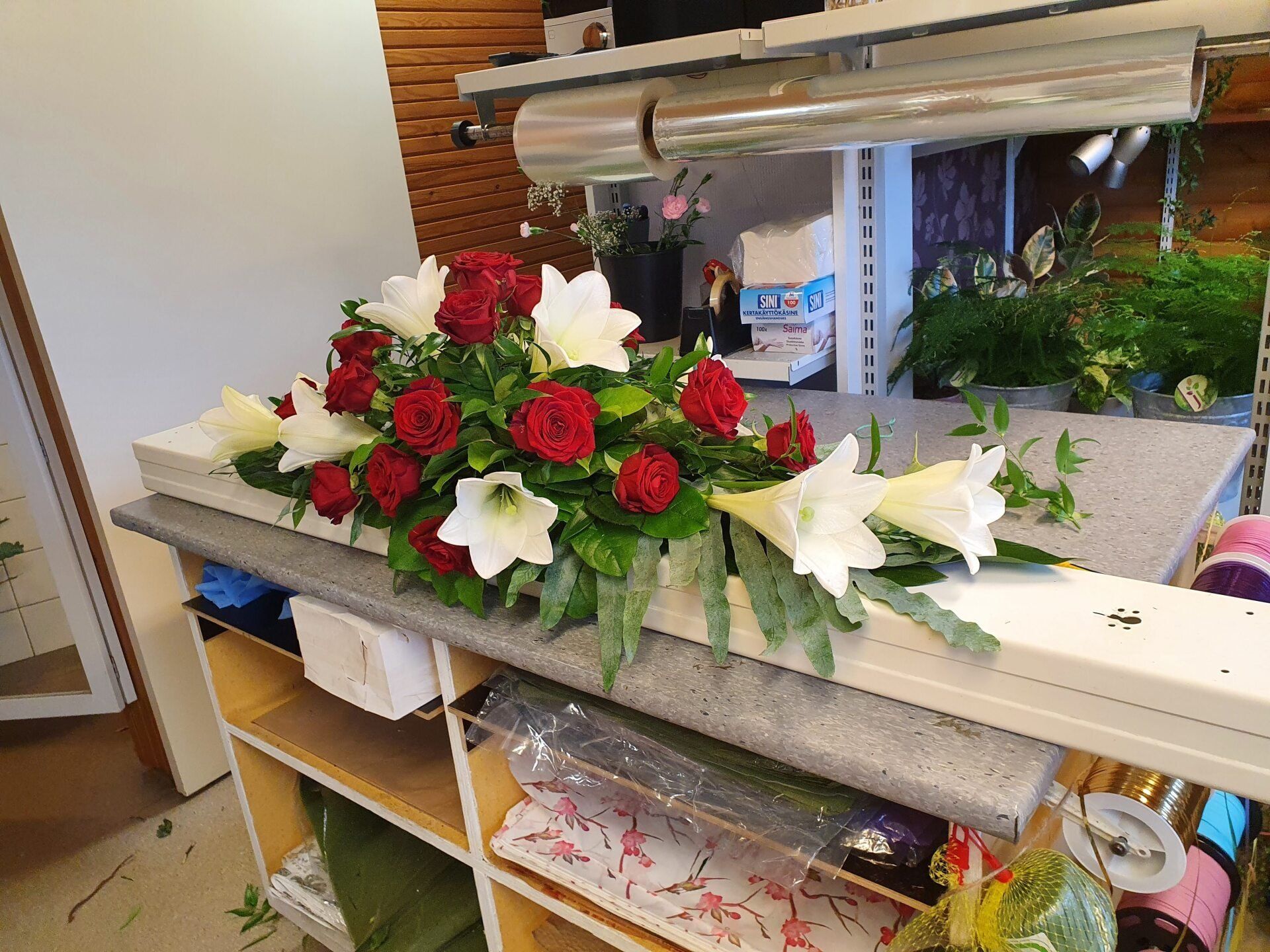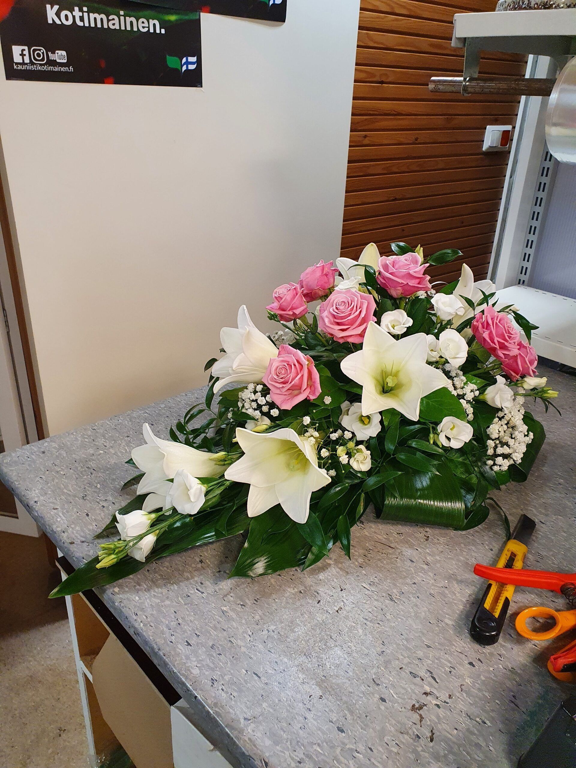 Valmistamme asiakkaan toiveiden mukaan myös surukukat. Alta löydät erilaisia vaihtoehtoja hautavihoista sekä arkkulaitteista.